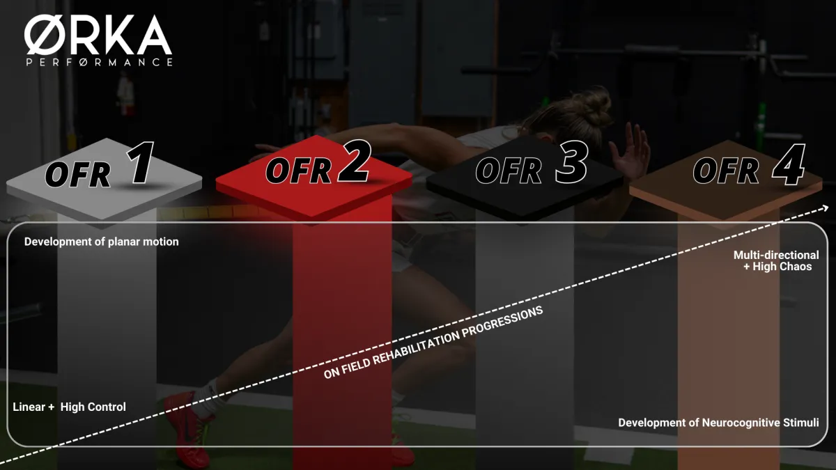 At ORKA, we believe the success of on-field rehabilitation lies in balancing late-stage rehabilitation principles—like neuromuscular control and movement quality—alongside the specific demands of training and match play. And this is why our rehabilitation and performance teams put emphasis on coaching our athletes through a 3-level on leg rehabilitation run, whether it be cleats on outside on field, or on the turf within our facility in the winter months.